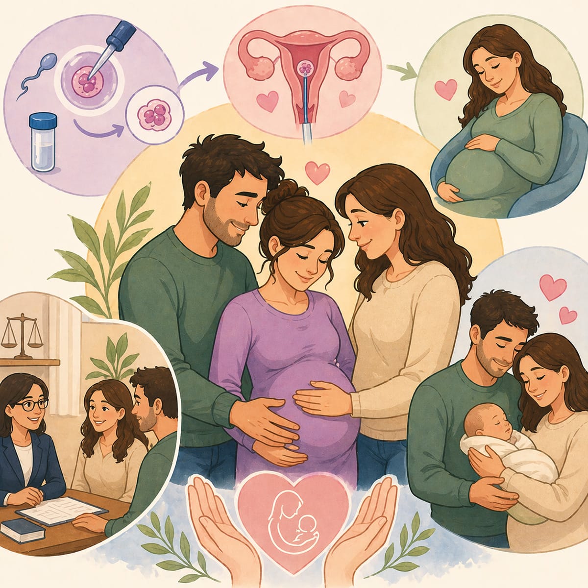 - Surrogazione gestazionale: la gestante porta in grembo un embrione creato mediante fecondazione in vitro con ovociti e spermatozoi dei genitori intenzionali (o di donatori). Non esiste alcun legame genetico tra la gestante e il nascituro. Questa è oggi la forma più diffusa e tecnicamente più avanzata.